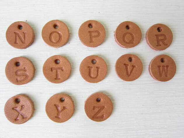 【革タグ】アルファベット イニシャル 直径約12mm