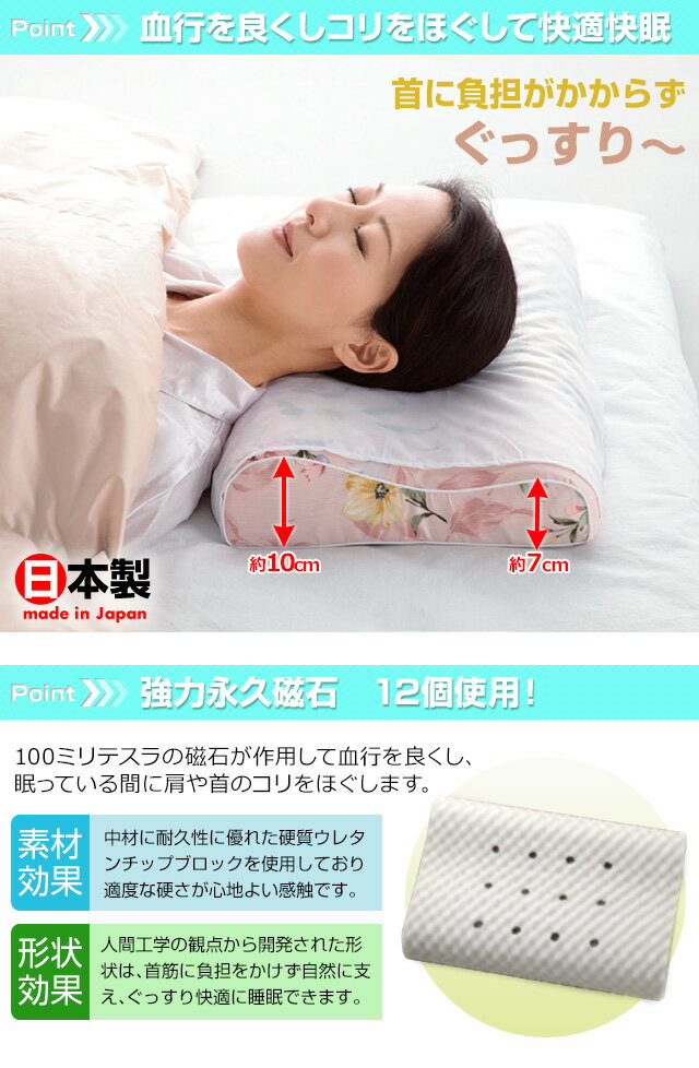 強力 永久磁石 12個使用 ニュー磁気まくら 枕カバー付き 日本製